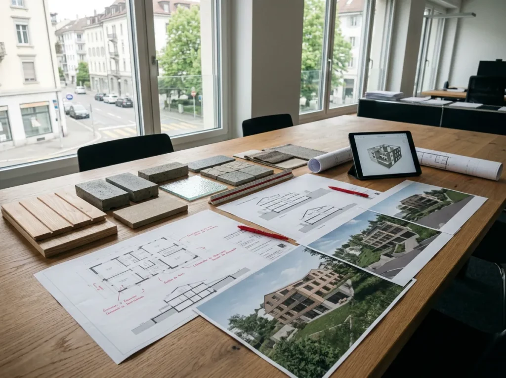 Pour des modifications structurelles comme l’abattage de cloisons ou la création d’ouvertures, vous devez obtenir l’accord de l’assemblée des copropriétaires. Votre architecte d’intérieur prépare un dossier détaillé à présenter lors de l’assemblée générale. Pour les modifications mineures limitées à l’intérieur de votre lot, aucune autorisation spécifique n’est requise, mais informez quand même l’administrateur PPE des dates de travaux.